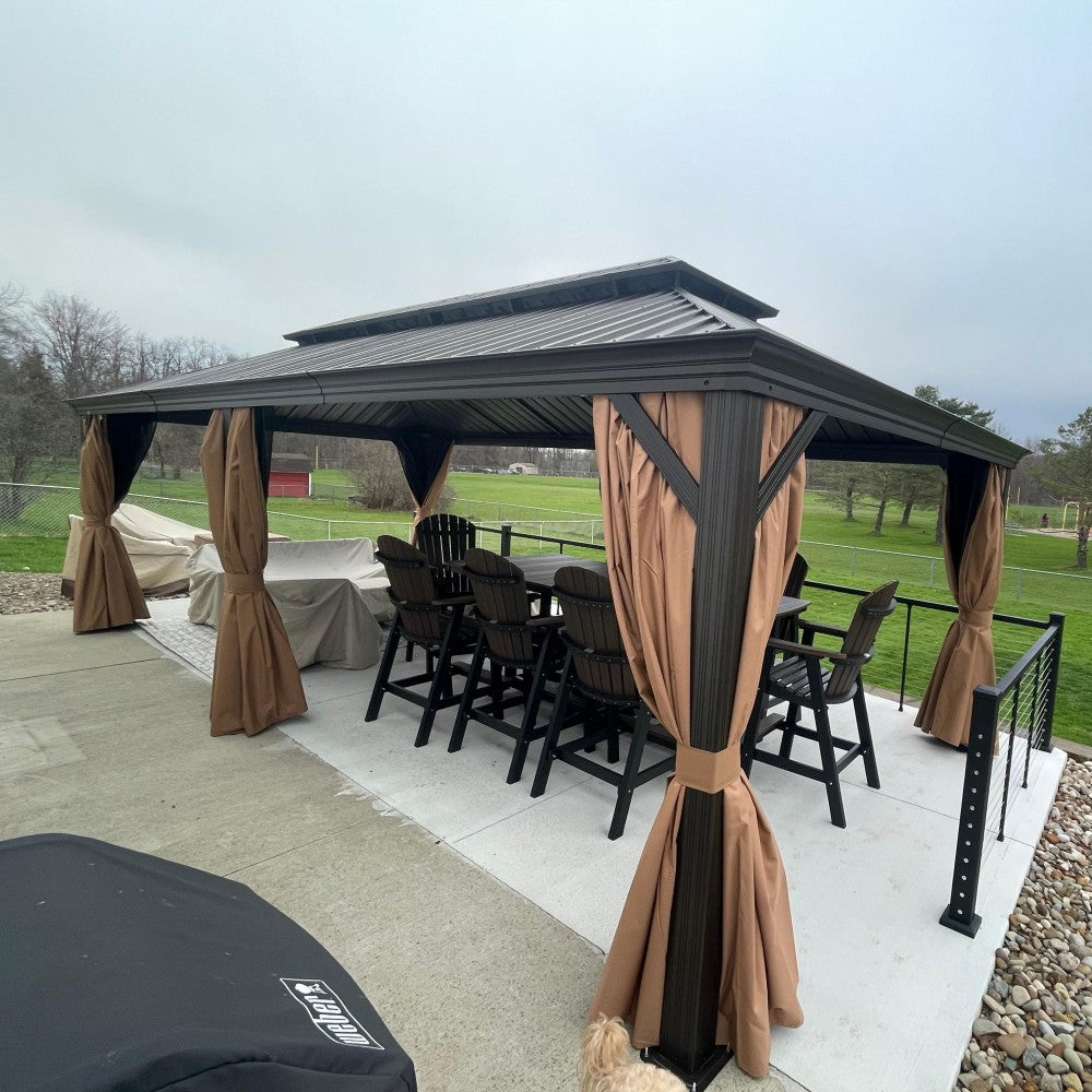 • [ Gültige Garantie ] Wir bieten eine begrenzte Garantie auf Herstellungsfehler: 5 Jahre Garantie auf das Hardtop-Dach, 2 Jahre Garantie auf Vorhänge und Netze, 1 Jahr Garantie auf die Rahmenkonstruktion.