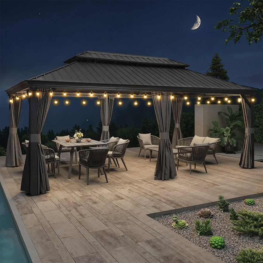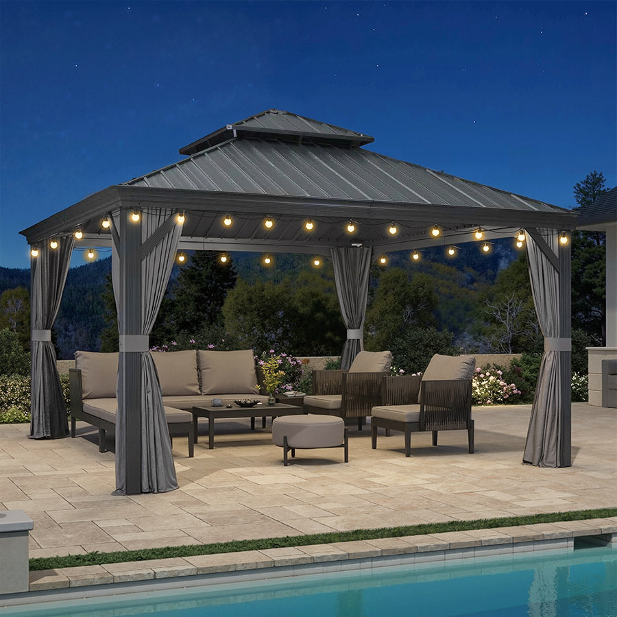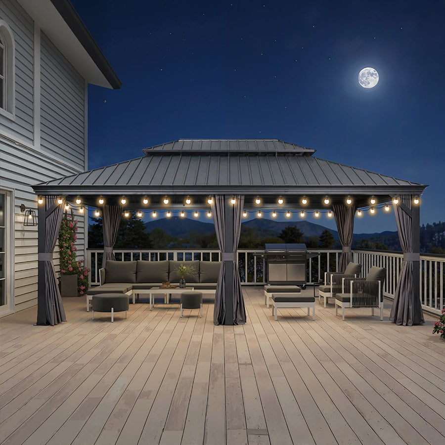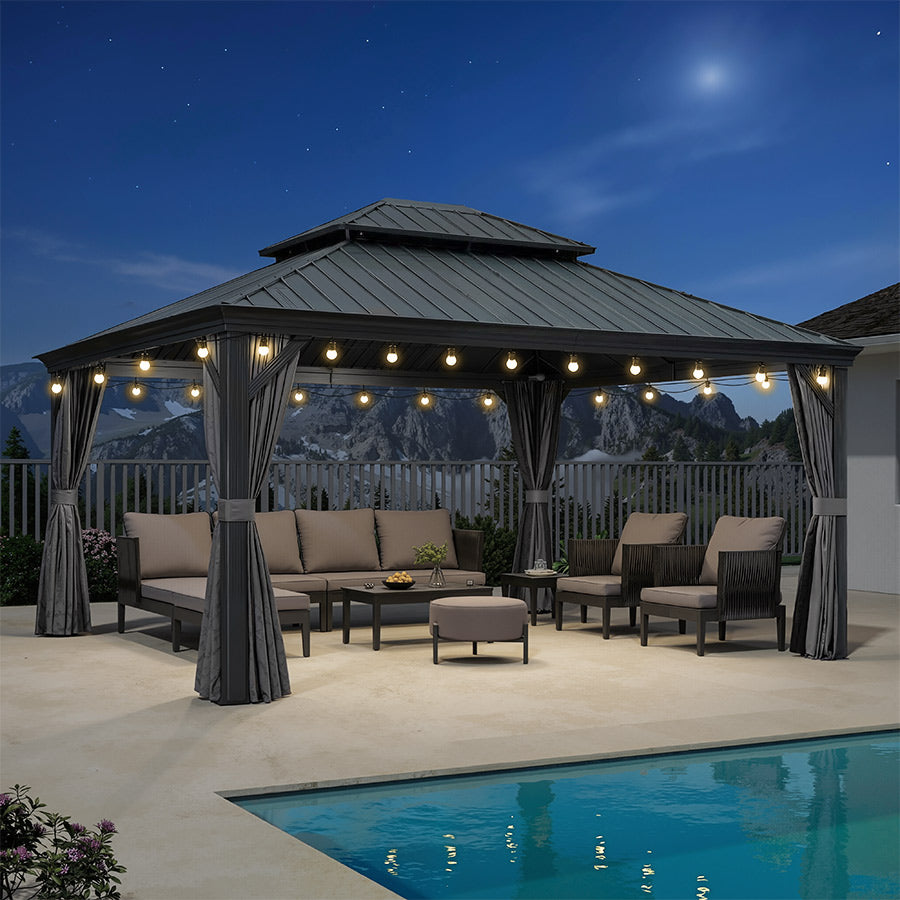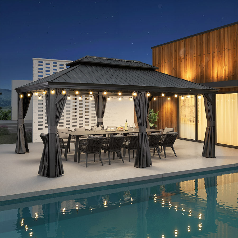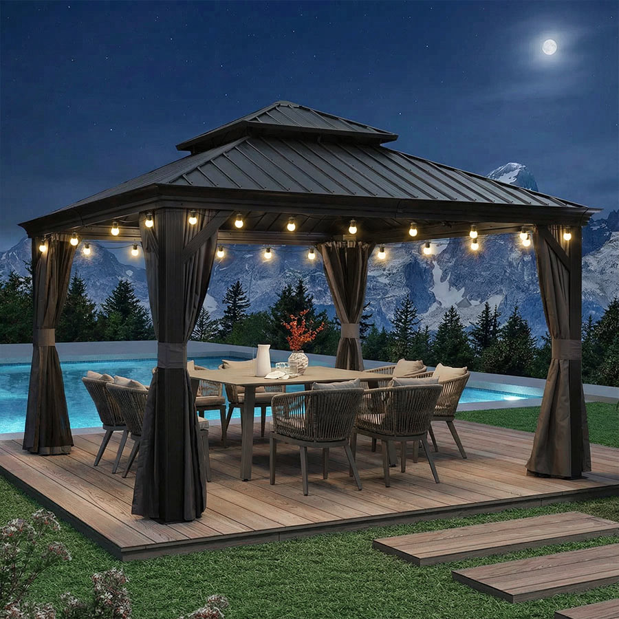 - [ Verlässliche Garantie ]: Begrenzte Herstellergarantie: 5 Jahre auf das Hardtop-Dach, 2 Jahre auf Vorhänge und Moskitonetze, 1 Jahr auf den Rahmen.