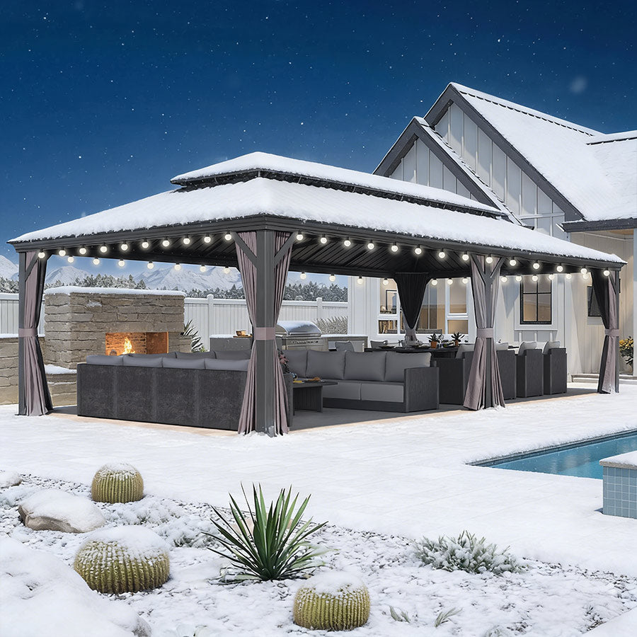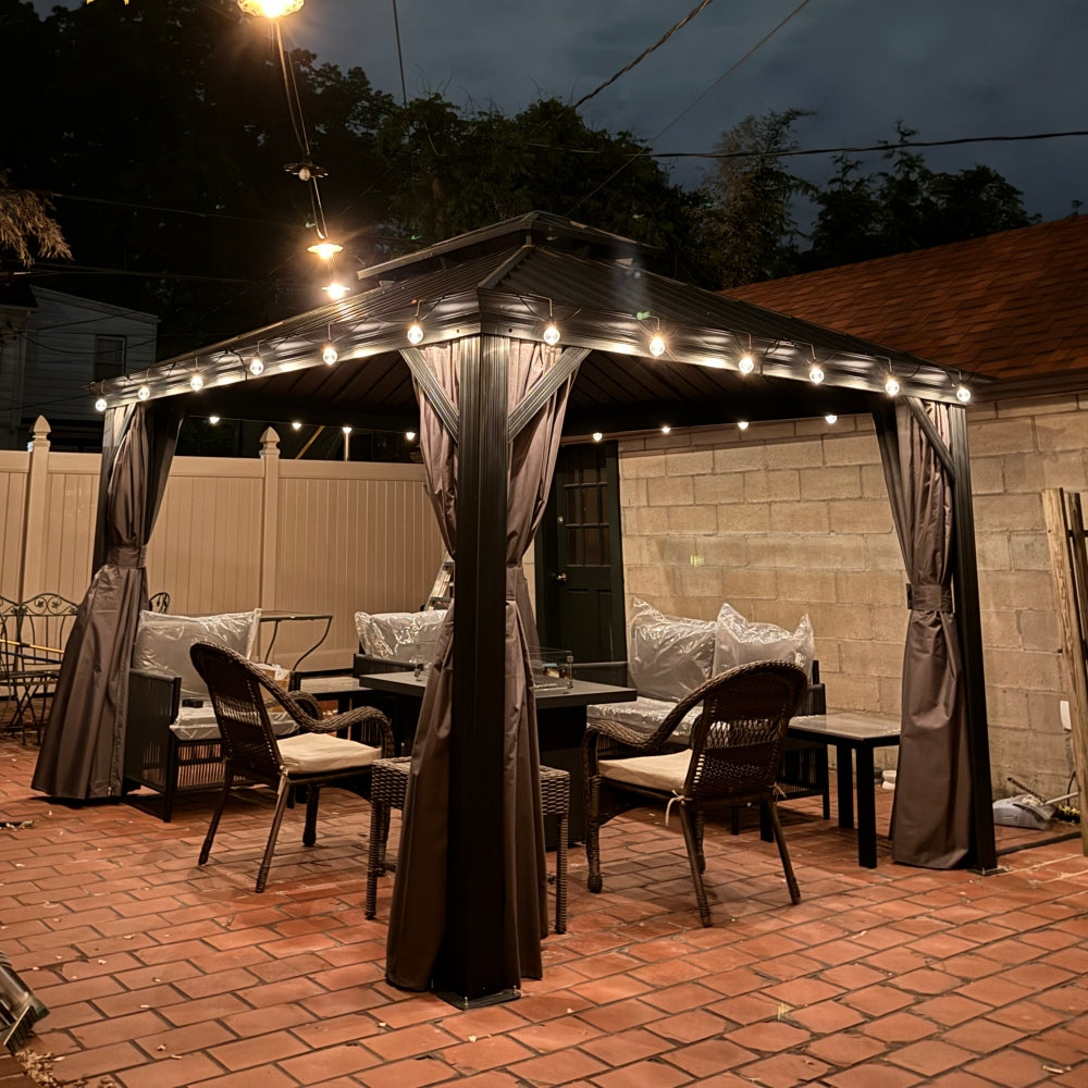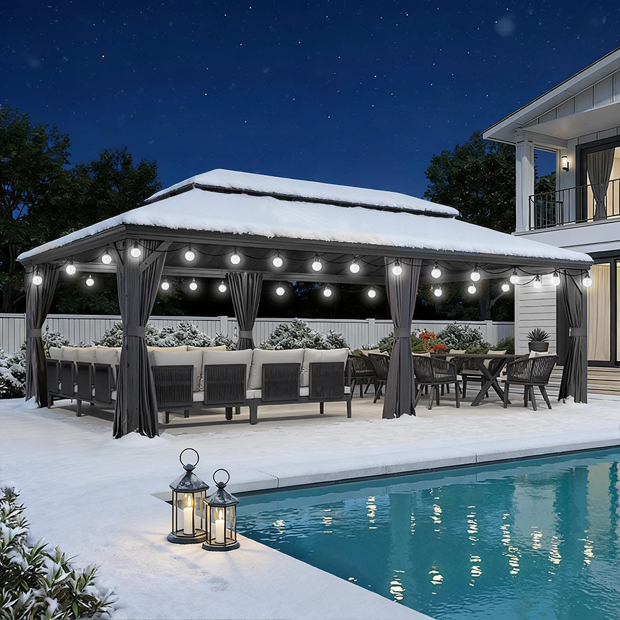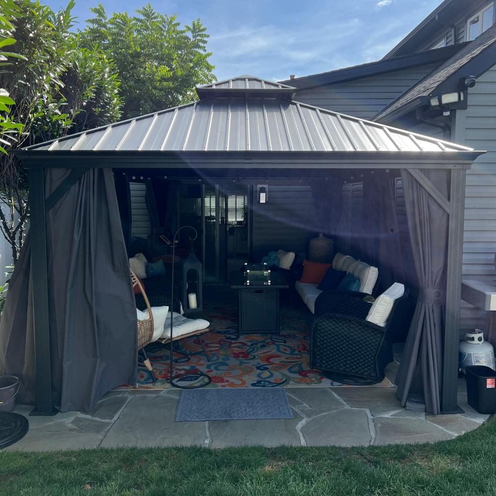- [ Bitte beachten ❗ ]: Das Pavillon sollte nach der Montage fest im Boden verankert werden. Bitte prüfen Sie vor dem Kauf lokale Bauvorschriften und HOA-Richtlinien, da eine Genehmigung erforderlich sein kann.