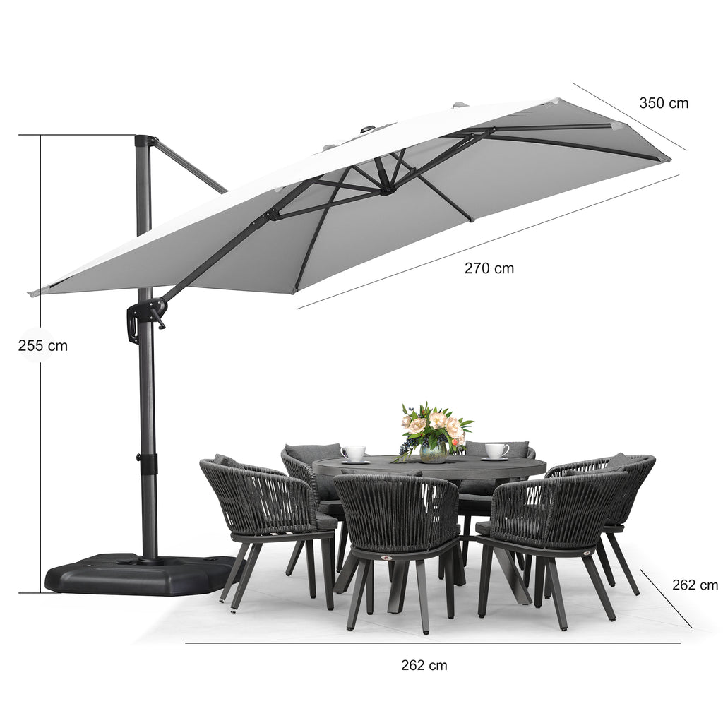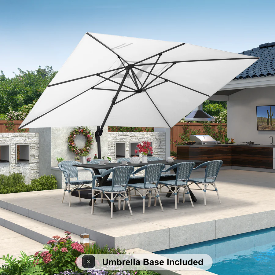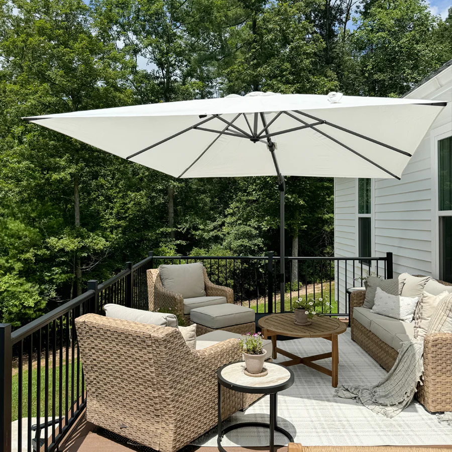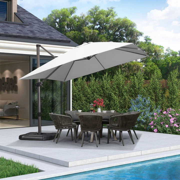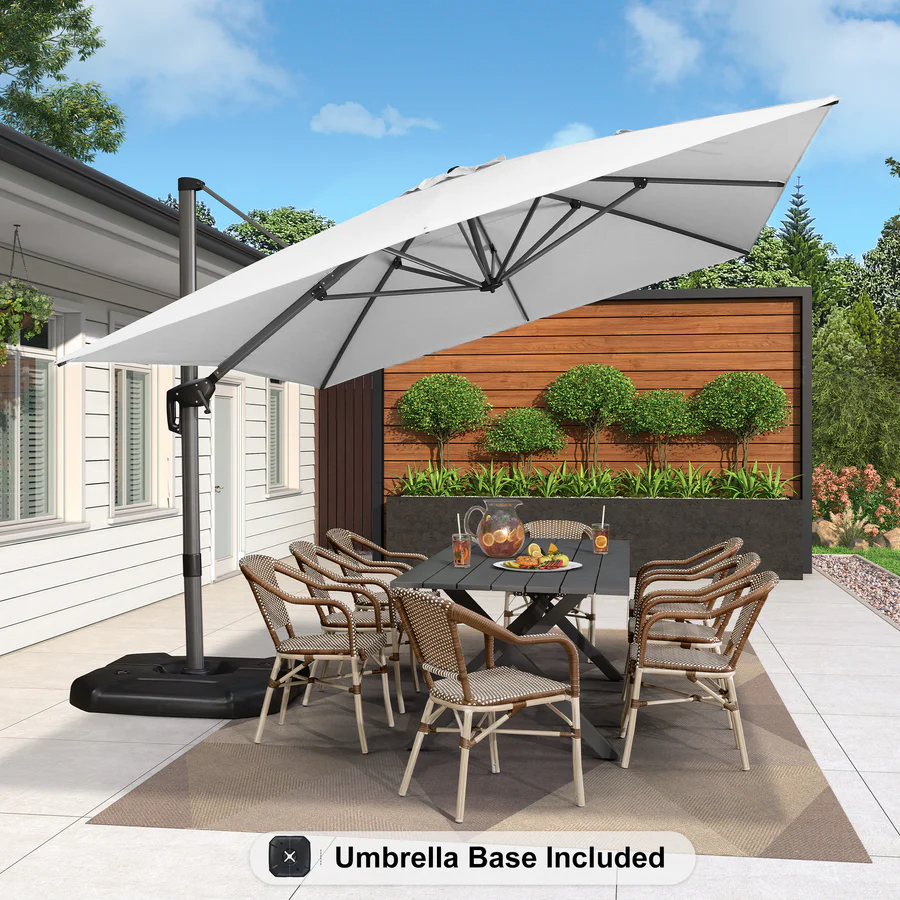 • Erhältlich in den Größen 250x250cm, 270x270cm, 300x300cm, 270x350cm,300x400cm bietet dieser Terrassenschirm reichlich Schatten, um Ihren Sitzbereich im Freien kühl und angenehm zu halten.