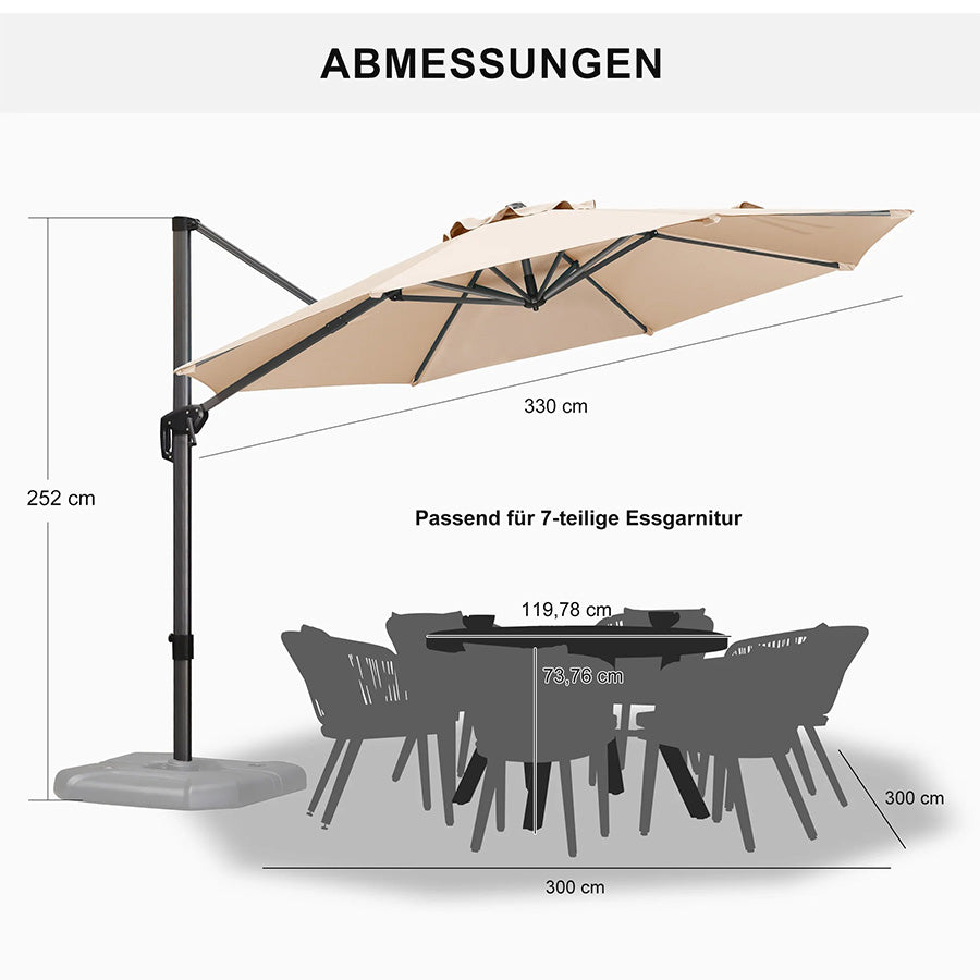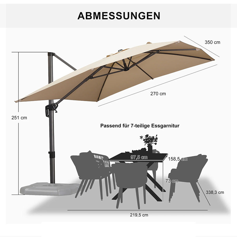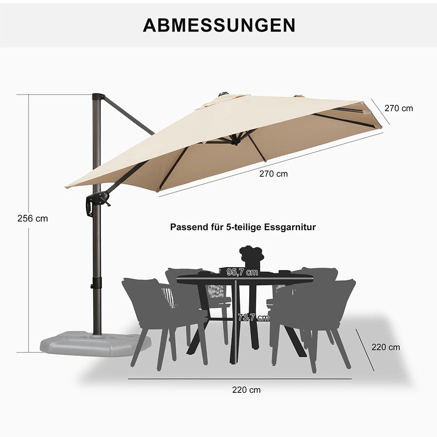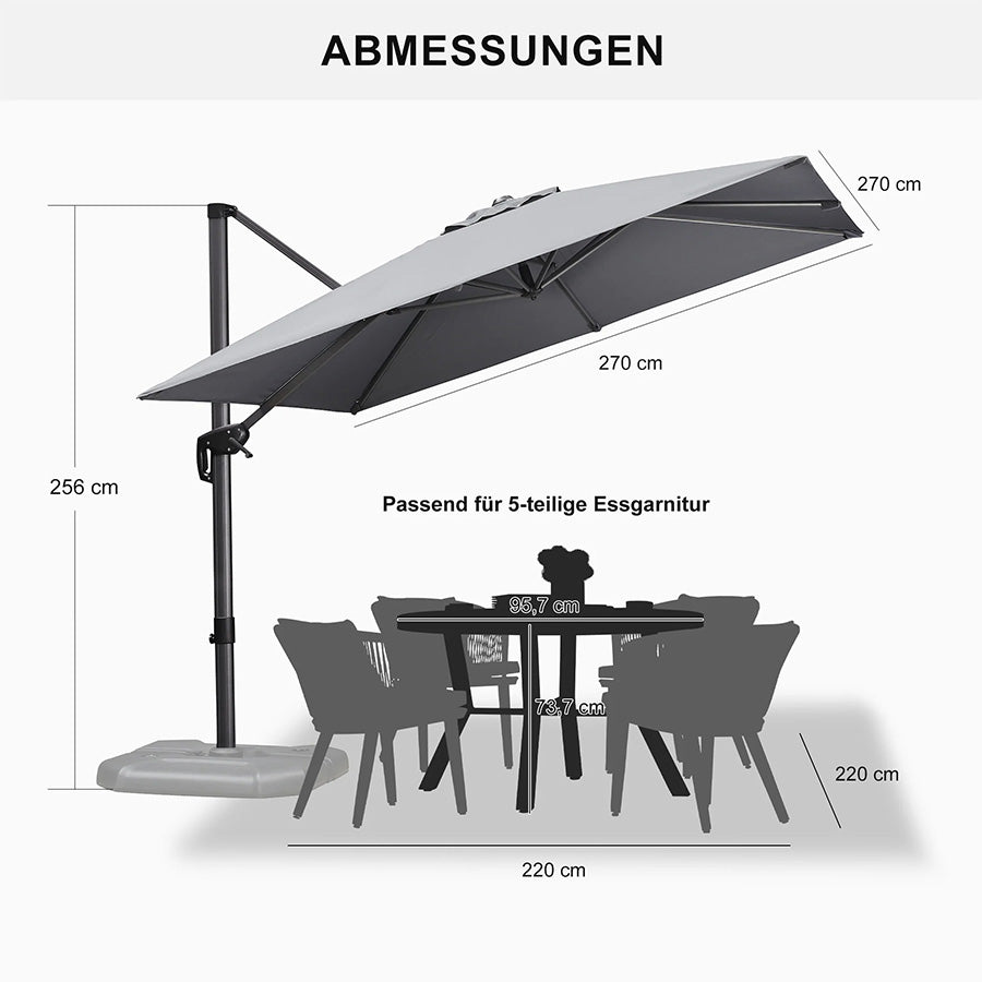 ✔Optimale Schattierung: 5 Höhen-/Neigungswinkel + 360° Drehung für flexiblen Sonnenschutz.