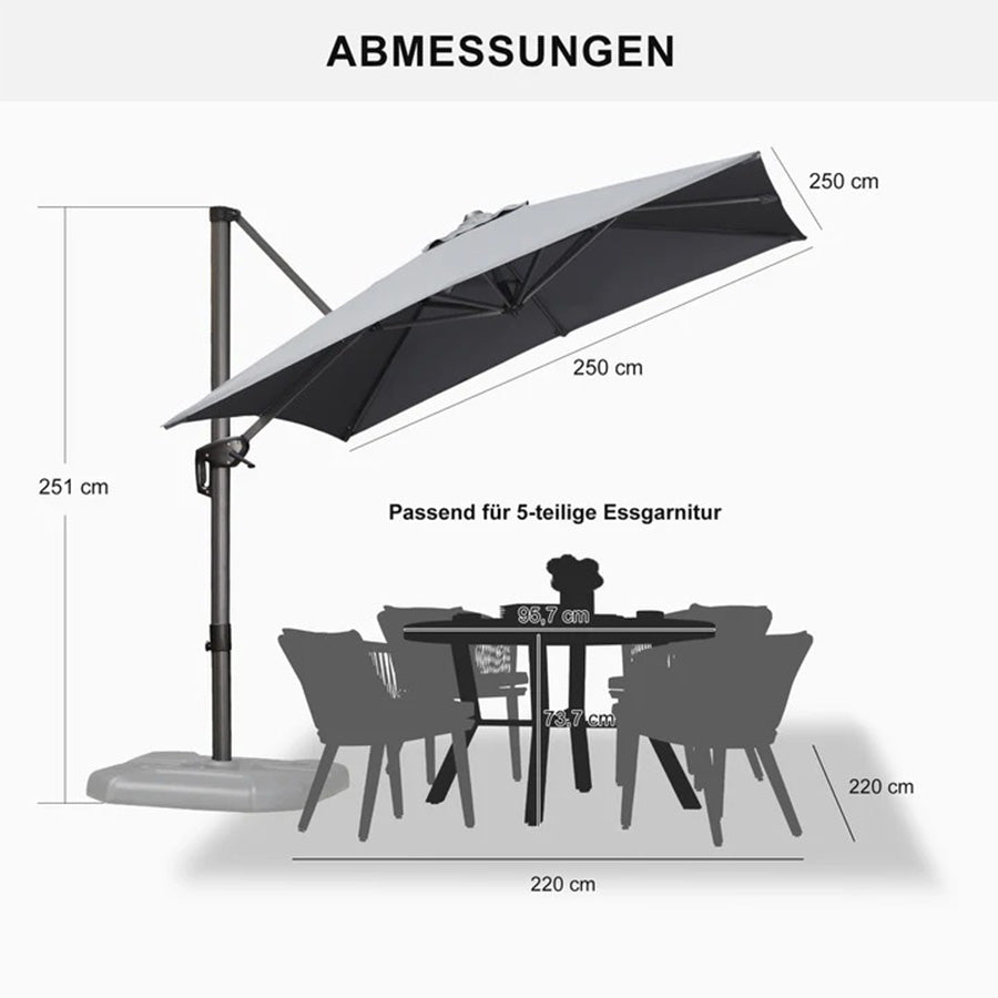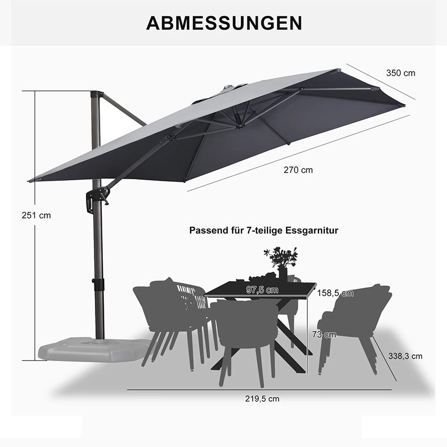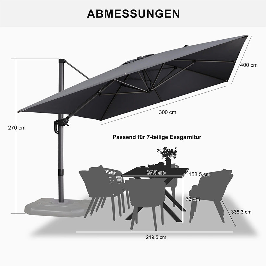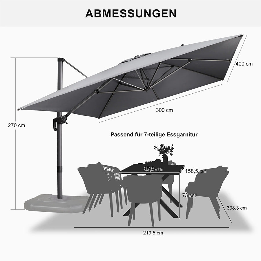 ✔Optimale Schattierung: 5 Höhen-/Neigungswinkel + 360° Drehung für flexiblen Sonnenschutz.