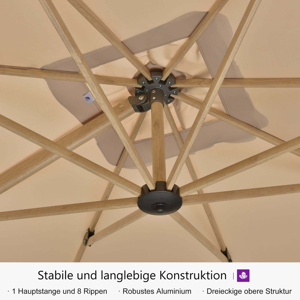 PURPLE LEAF Holzmaserung Ausleger-Sonnenschirm Aluminium Outdoor-Sonnenschirme