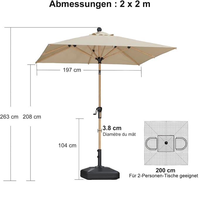 💜 [Wartungsarmes Design]: Dieser Outdoor-Sonnenschirm verfĂŒgt ĂŒber einen robusten Aluminiumschaft, der die bei Eisen oder Stahl hĂ€ufig auftretenden Probleme mit Rost und Korrosion beseitigt und somit eine lange Lebensdauer gewĂ€hrleistet.