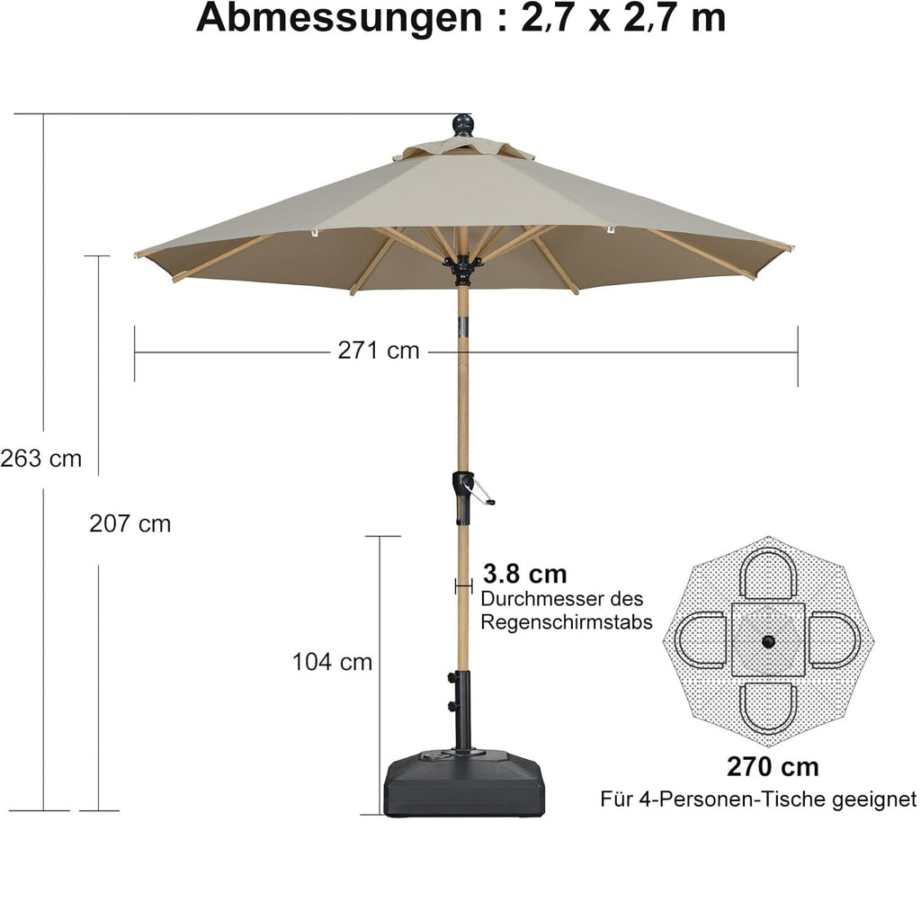 PURPLE LEAF Holzoptik Sonnenschirm MittelsĂ€ulenschirm aus Aluminium Marktschirm fĂŒr Balkon Market Garten